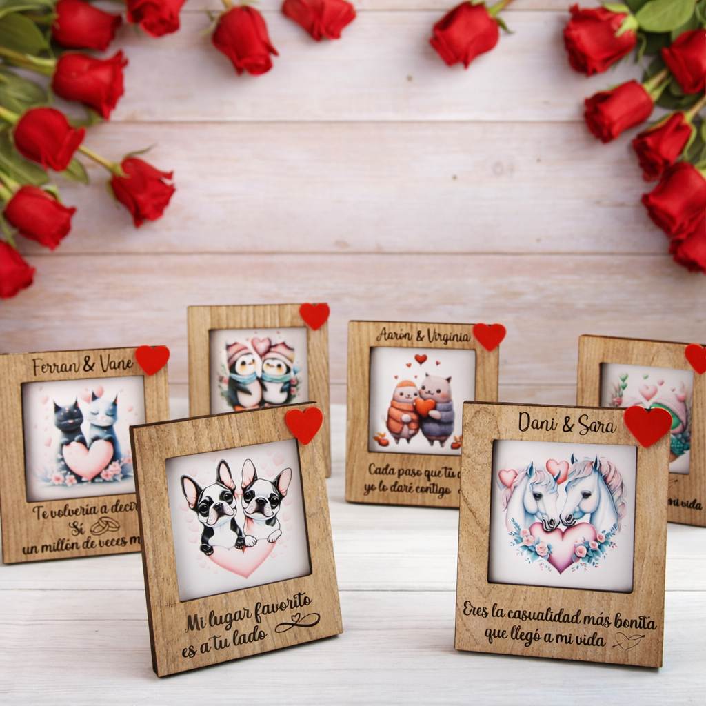 El marco de fotos tiene soporte para ponerlo de pie y un imán en la parte trasera para colocarlo en la nevera. Personalización del Producto Productos en la misma categoría