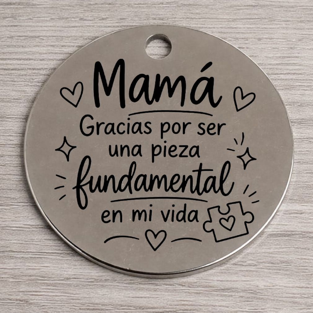 Colgante acero inoxidable 30mm. Agujero 2 - 2,5mm. Mamá gracias por ser una pieza fundamental...